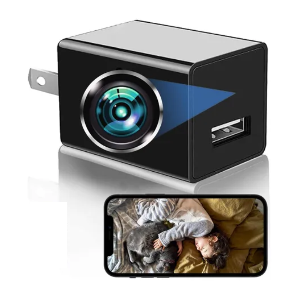 Cargador de teléfono con cámara espía oculta WiFi 1080P Full HD, detección de movimiento inteligente y visualización remota. Ideal para vigilancia discreta en el hogar, oficina o como nanny cam.Puntos clave / Características:📶 Conexión WiFi: Permite visualización en vivo desde dispositivo móvil.🔒 Diseño discreto: Cámara completamente oculta dentro de un cargador funcional, difícil de detectar.🎯 Detección inteligente: Tecnología IQ Motion Detection con 130 puntos de sensibilidad para captar cualquier movimiento.💾 Almacenamiento ampliado: Compatible con tarjetas micro SD de hasta 256 GB (no incluida).🎥 Grabación flexible: Puede grabar de forma continua o solo cuando detecta movimiento, con video 1080P nítido.🔌 Fácil de usar: Solo conéctalo a un enchufe o power bank y comenzará a grabar automáticamente, sin necesidad de configuración complicada.⚙️ Portátil y versátil: Puede colocarse en cualquier dirección para lograr el ángulo de vigilancia deseado.Beneficios para el usuario:Monitorea espacios importantes sin llamar la atención.Configuración rápida y sin cables adicionales.Visualiza en tiempo real lo que ocurre desde tu dispositivo móvil.Ideal para proteger tu hogar, oficina o supervisar cuidadores y mascotas.
